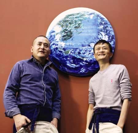 馬雲和錢峰雷--相比馬雲和馮小剛,王中軍賣畫更多。他的畫作已經有不少收藏者,包括馬雲、史玉柱、於明芳、曹國偉等知名企業家,也有張國立、宋丹丹、汪峰等娛樂圈人士。「因為我有資源,有這個社會圈子。」王中軍直白地說