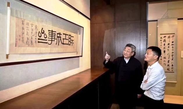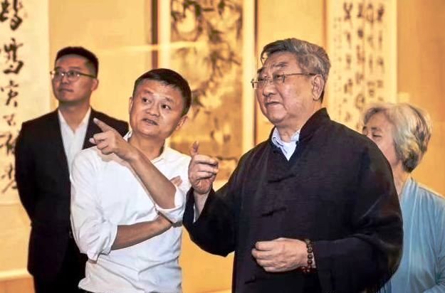 馬雲與韓天衡---馬雲先生是我國的商界精英,他對傳統文化有很深的情結。他自幼喜歡太極拳,後來還專門拍了一部電影《功守道》。他對書畫也有濃厚的興趣,偶爾也會寫寫書法,他還曾與中國當代藝術家曾梵志合作,畫了一幅油畫《桃花源》,2015年在香港的蘇富比拍賣會上,被一位神秘買家以3600萬港元買走。