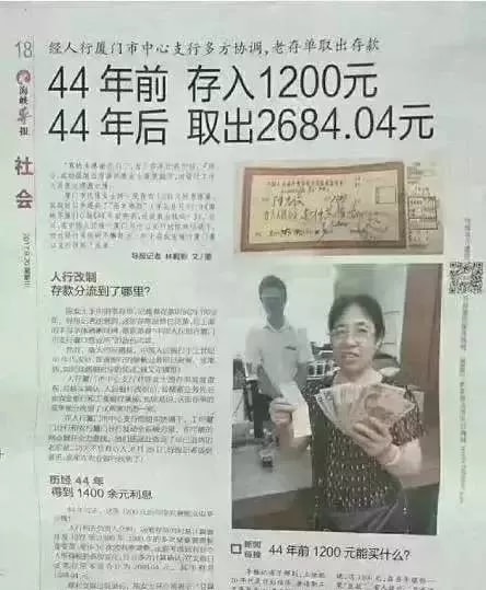 44年前,將1200元全部存入銀行,到今天可以變成2684.04元,可以買輛電動車! 有網友戲稱“當年存進一棟樓,今天取出一張床”!