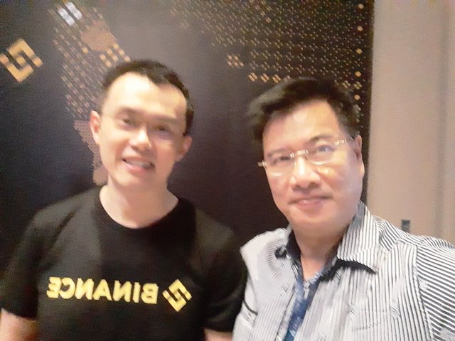 2019亞洲區塊鏈高峰論壇 國家寶藏(NATS)創辦人暨執行長與幣安交易所的創辦人暨執行長趙長鵬交流合影、幣安交易所世界最大的密碼貨幣交易所(中華藝術網)